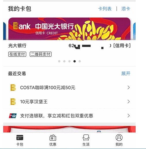 “云闪付”APP整合了所有银行卡的优惠和权益,查询操作如下: