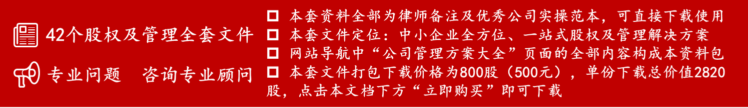 | 12 | 股东会决议(虚拟股权) | 33 | 考勤管理制度及工具表格 | ||||||||||